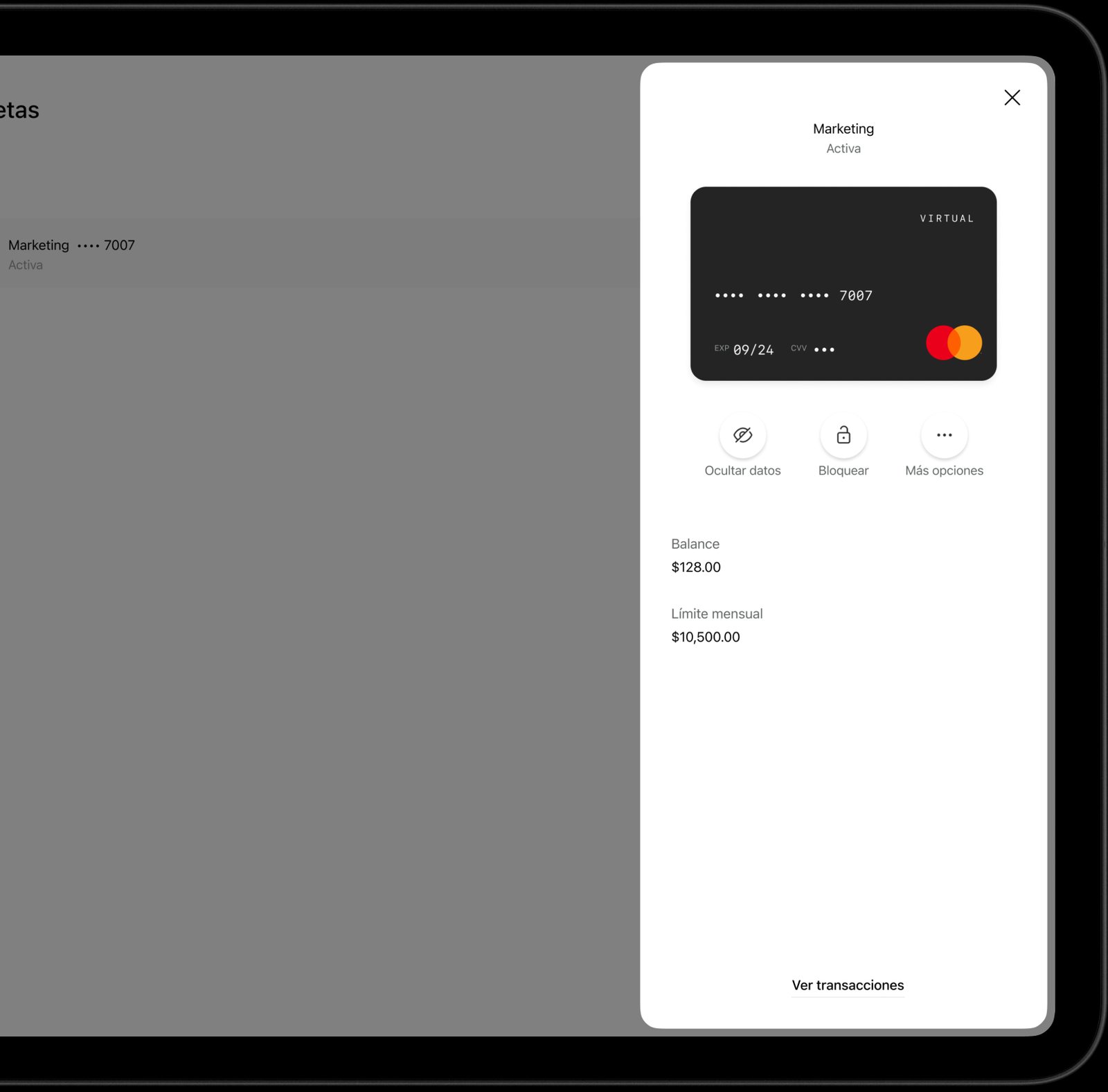 ✓ Límite por tarjeta: cuando un usuario crea una tarjeta, puede establecer un límite de gasto para tener mayor control sobre los cargos de esa tarjeta.